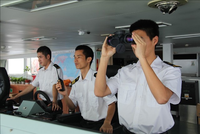 夜色籠罩著“海洋六號”駕駛室,只有成排的儀表閃爍著熒光。遠方的海面上,“潛龍一號”紅色的頻閃燈不停跳動閃亮。憑借這如豆燈光,船長藍明華快速、準確地判斷出方位,果斷、沉穩(wěn)地發(fā)出一個又一個的指令,指揮駕駛員調(diào)整航向、航速,直到船舶靠近潛器并順利將其回收。