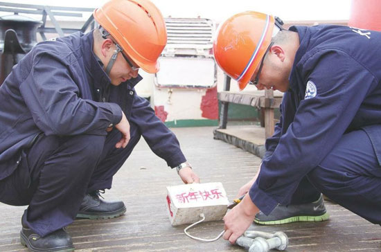 這天是中國的農(nóng)歷除夕,中國大洋第30航次第二航段首席科學(xué)家陶春輝特意來到后甲板,看望慰問大家:“新年快樂!大家辛苦!”陶春輝叮囑設(shè)備組人員將事先寫好的“新年快樂”標(biāo)志物搭載在ROV上,讓大家在西南印度洋也能感受到過節(jié)的氣氛。