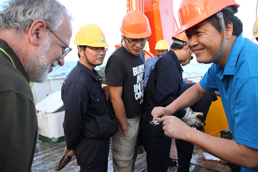 在取樣現場全程觀看的俄羅斯全俄海洋地質研究所科學家不住地對陶春輝說“very good”。據他介紹,他此前看到過大西洋的碳酸鹽“煙囪體”,這次中國成功在西南印度洋抓取的碳酸鹽“煙囪體”,將會是一個非常好的證據。
