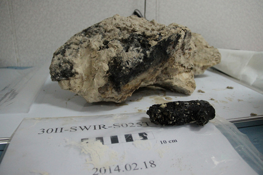 “大洋一號”船時間2月18日18時30分左右,中國大洋第30航次第二航段在位于我國西南印度洋多金屬硫化物勘探合同區的第8個作業站位中,通過電視抓斗成功抓獲3大塊柱狀碳酸鹽塊和一段碳酸鹽“煙囪體”。該碳酸鹽“煙囪體”的成功抓取,將有望成為該區域發育熱液碳酸鹽區的重要證據。