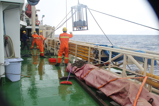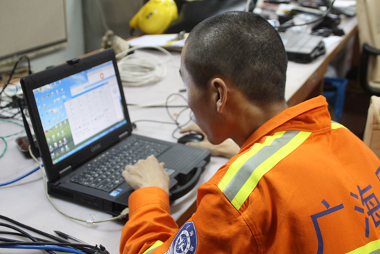 經過討論,第二天項目組決定改變作業方式,讓船舶拖曳著測距儀,在4公里半徑內圍繞著應答器低速航行。這對船舶操作是一次考驗,駕駛室按照作業要求開始工作,可是獲取的數據依舊不太理想,不得不停止測距工作,改為進行其他科考項目,同時將問題反饋給后方,請求技術支持。從長基線布放工作開始,李想就一直守在電腦前,幾乎兩天兩夜沒有合眼,期間,電腦也出現幾次死機故障,讓原本就艱難的測距工作雪上加霜。