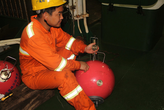 應答器錨系的投放非常順利,夜色中,紅色圓球狀的長基線應答器上的指示燈一閃一閃,帶著4個浮球緩緩沉向海底,在未來的幾十天里,它們將一直呆在5000多米的太平洋底,像4盞不滅的路燈,為“潛龍一號”照亮道路。直到潛器完成工作任務,它們才會收到命令,拋掉壓鐵,浮出海面,重見天日。