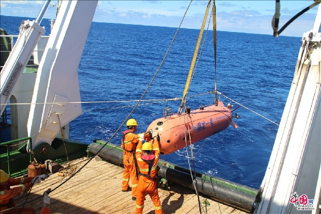 絞車(chē)?yán)o鋼纜,止蕩繩拉緊,“潛龍一號(hào)”離開(kāi)水面,很快被移動(dòng)到后甲板上的固定裝置上。現(xiàn)場(chǎng)指揮于彥江看了一下手表,從發(fā)現(xiàn)“潛龍一號(hào)”到回收到后甲板,已經(jīng)整整過(guò)去了一個(gè)半小時(shí)。