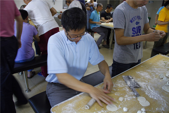 沈自所是一個大的集體,前兩個航段都將有十幾名隊員參與大洋40航次,這一桌也是最先啟動“勞務(wù)模式”的。只見“潛龍二號”總設(shè)計師劉健充分擔(dān)當(dāng)了隊長角色,把任務(wù)安排的井井有條:徐春暉負(fù)責(zé)搟面皮,許以軍、李陽和劉總負(fù)責(zé)包餃子,這“三對一”的局面顯然是“供不應(yīng)求”,于是,記者也放下手中的相機,加入到了搟面皮的隊伍中來。