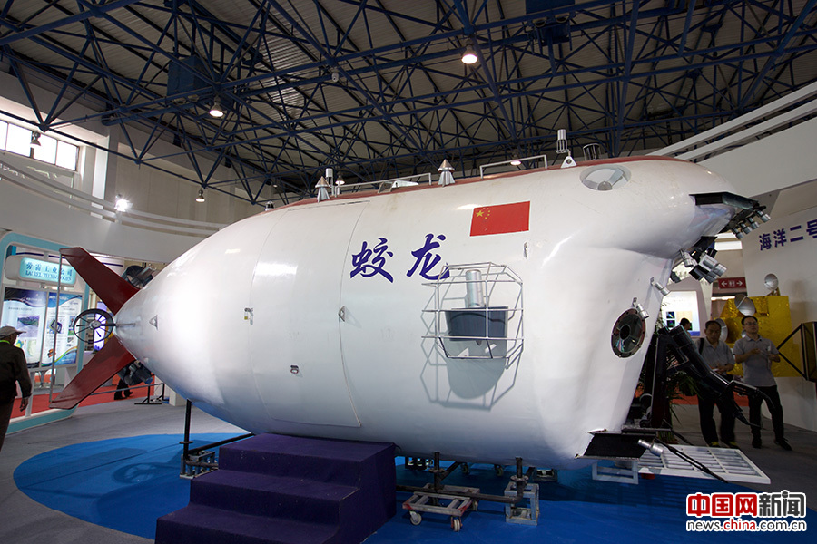 2016年5月19日,北京,我國自行設(shè)計(jì)、自主集成研制的載人深潛器“蛟龍?zhí)枴蹦P土料嗫撇?huì)。當(dāng)日,第十九屆中國北京國際科技產(chǎn)業(yè)博覽會(huì)會(huì)展部分在中國國際展覽中心正式開幕。中國網(wǎng)記者吳聞達(dá) 攝