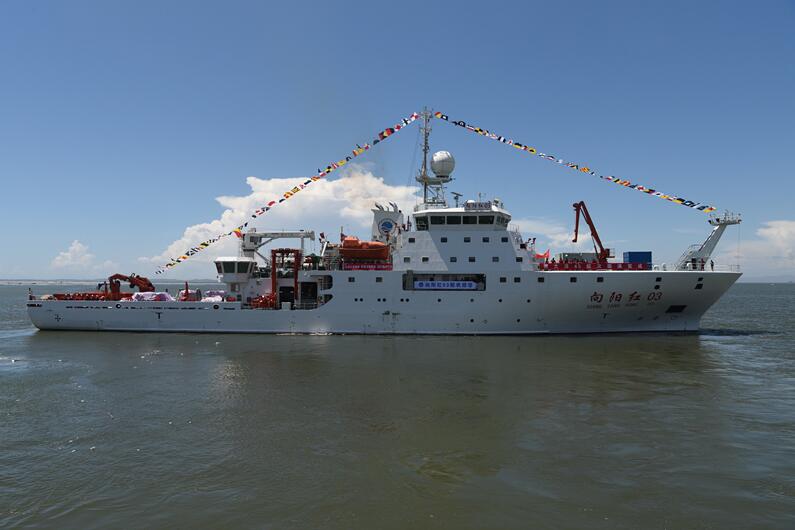 4500噸級的“向陽紅03”科考船于2015年底建造完成并投入海試工作,于2016年3月交付使用并入列國家海洋調查船隊。該型科考船為中國自主設計與建造、綜合觀測技術能力達到國際一流的科學考察船,具備海洋動力、地質與地球物理、生物生態、大氣等環境綜合科考能力。