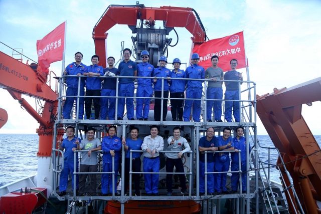 “蛟龍”號完成中國大洋38航次最后一潛,技術保障團隊合影慶祝