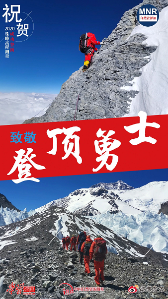 5月27日11時,2020珠峰高程測量登山隊8名攻頂隊員次落、袁復棟、李富慶、普布頓珠、次仁多吉、次仁平措、次仁羅布、洛桑頓珠克服重重困難,成功從北坡登上珠穆朗瑪峰峰頂,完成峰頂測量任務(wù)。