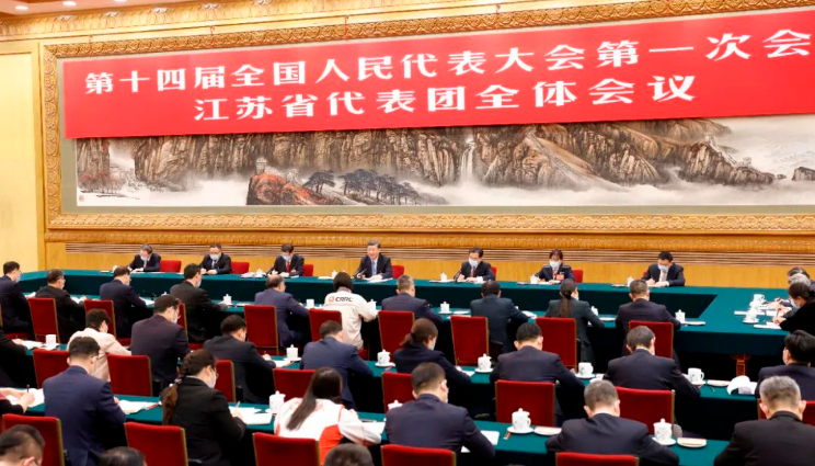 3月5日,中共中央總書記、國(guó)家主席、中央軍委主席習(xí)近平參加他所在的十四屆全國(guó)人大一次會(huì)議江蘇代表團(tuán)審議。新華社記者李學(xué)仁攝